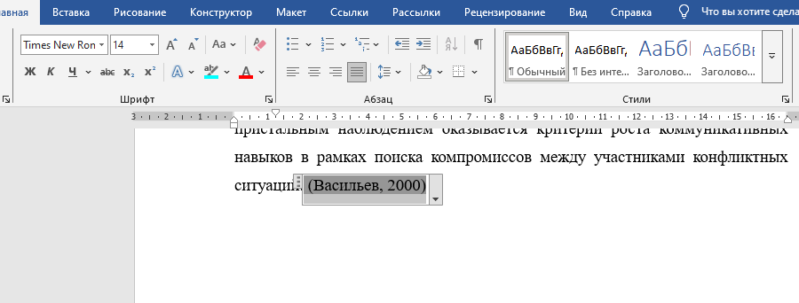 - Нажать кнопку «Ok». В документе на выбранном месте появится цитата в том стиле, который был выбран.